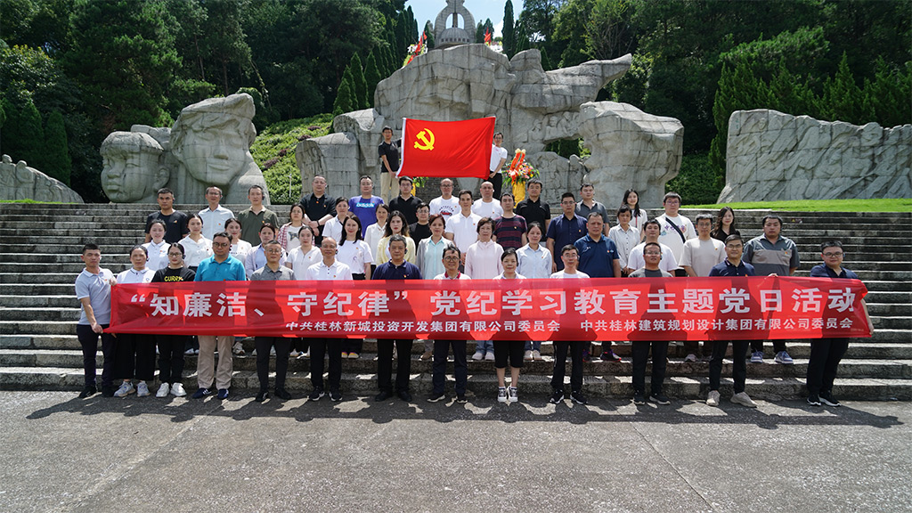 为加强党员干部廉洁意识和纪律意识,进一步推进廉洁国企建设,2024年7月5日,新城投集团党委联合设计集团党委到兴安湘江战役纪念碑园开展“知廉洁、守纪律”党纪学习教育主题党日活动。新城投集团党委副书记兼纪委书记谭力源,党委委员、副总经理叶青旺,设计集团党委书记陆卫坚,党委委员、监事会主席苏萍等50余名党员同志参加活动。