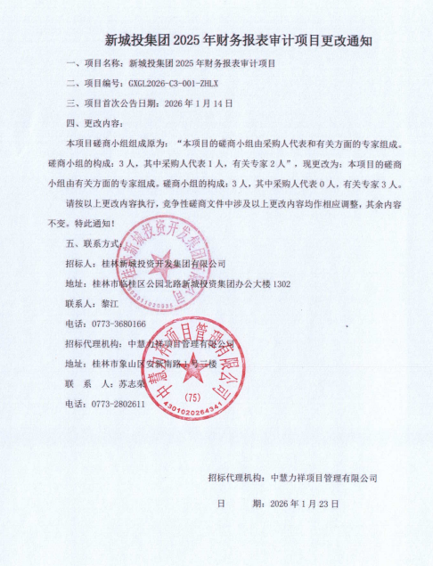 中慧力祥项目管理有限公司关于新城投集团2025年财务报表审计项目竞争性磋商公告